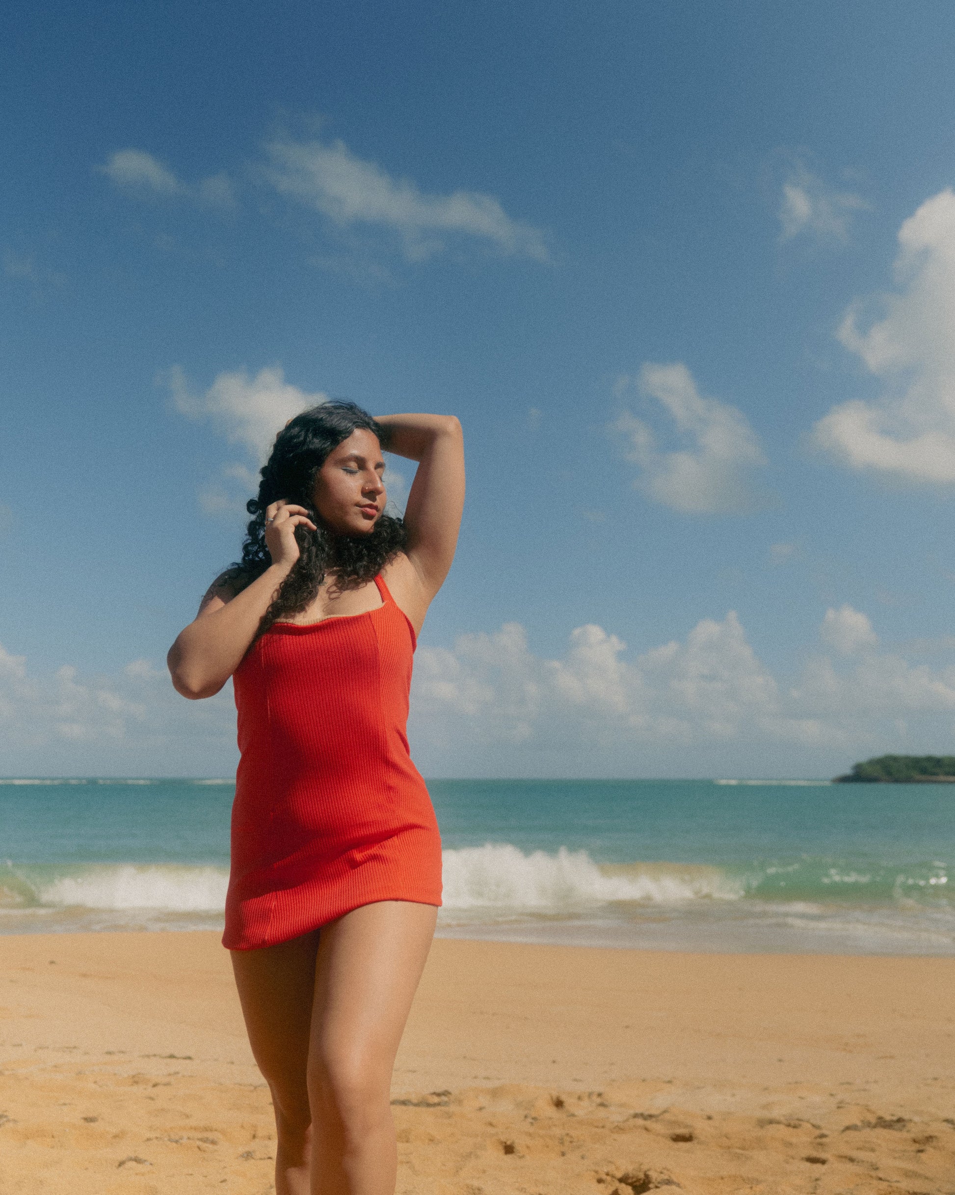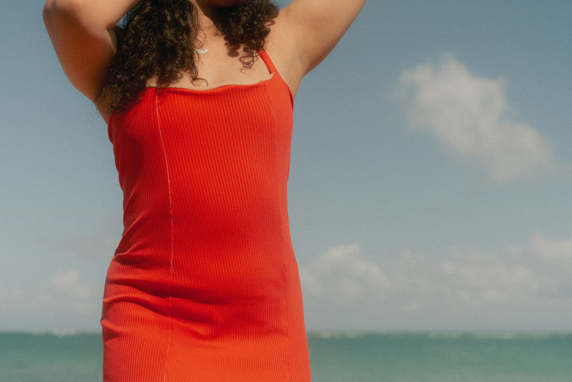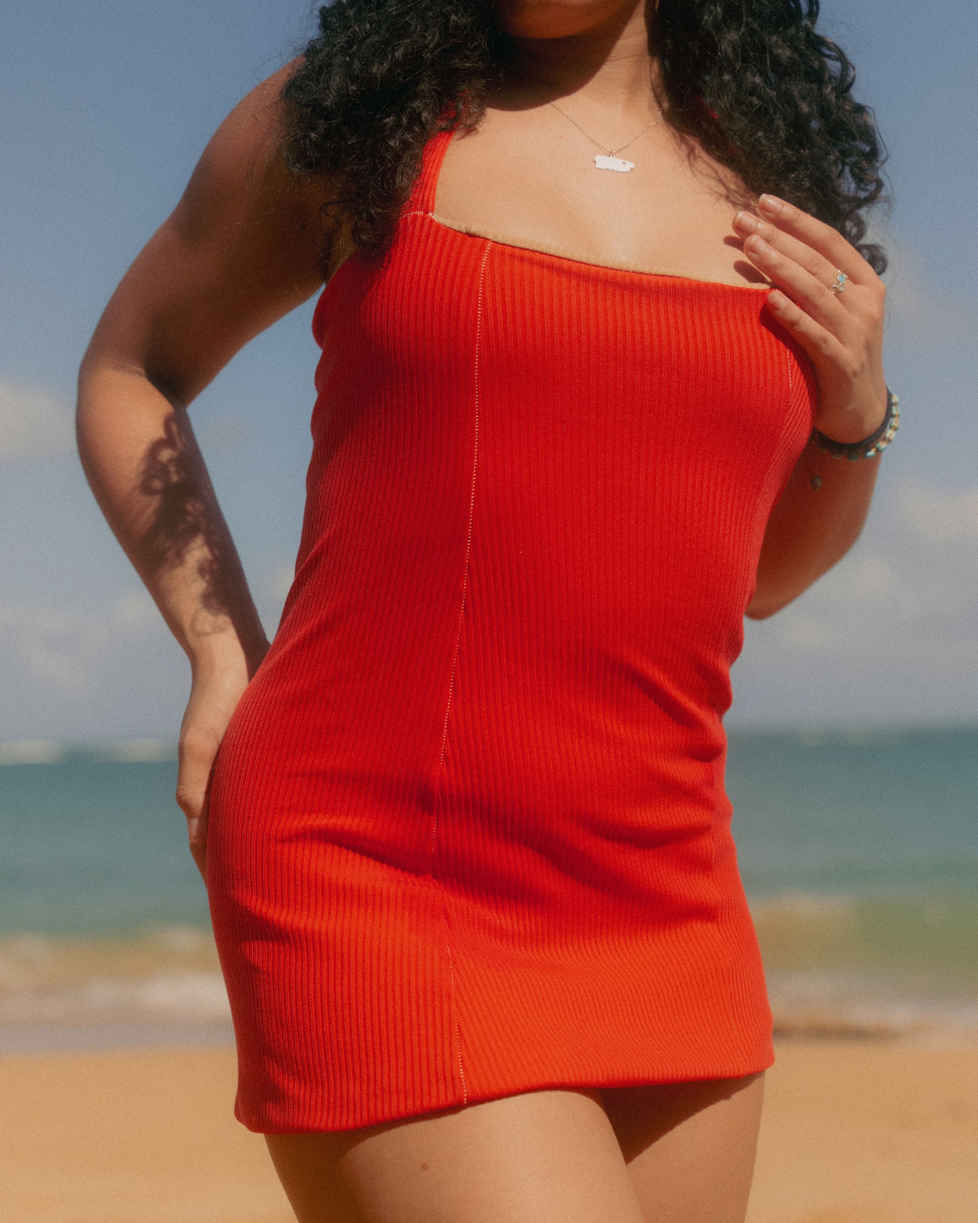 Reversible Swimwear Dress, square neckline, short-short, princess cut.